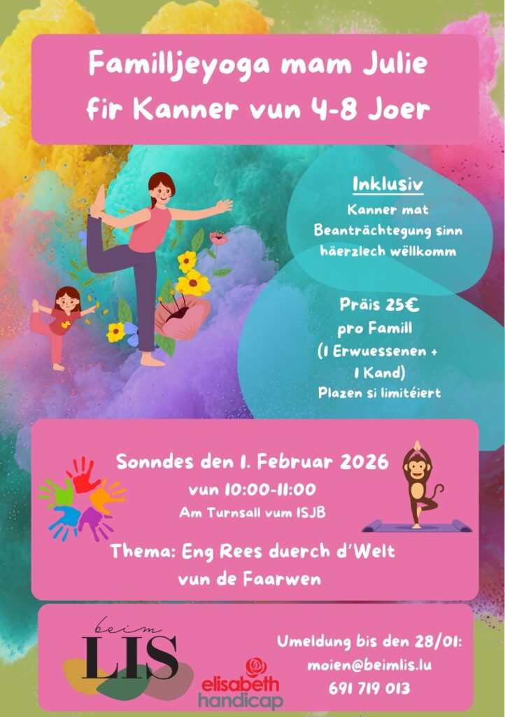 Familljeyoga mam Julie fir Kanner vun 4-8 Joer