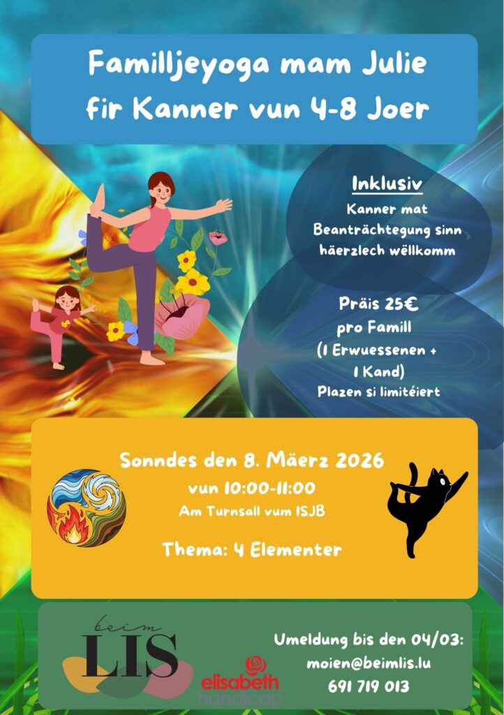 Familljeyoga mam Julie fir Kanner vun 4-8 Joer