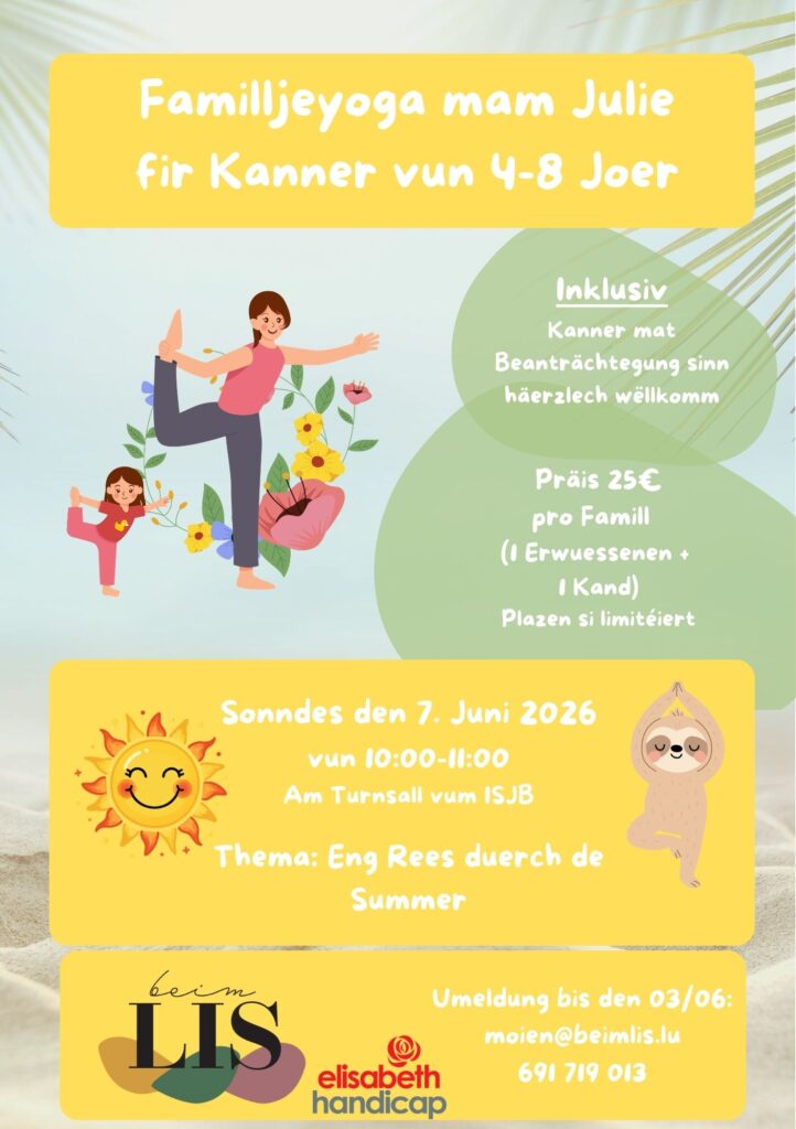 Familljeyoga mam Julie fir Kanner vun 4-8 Joer